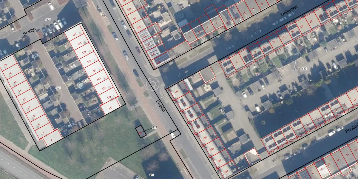 Het perceel waarop Boelijn 116 staat heeft een oppervlakte van 9436 m². Dit is een zeer groot perceel. De perceeloppervlakte wordt geregistreerd door het Kadaster. Gedetailleerde informatie over de maten van dit perceel kunt u vinden in het rapport Kadastrale kaart met maatvoering van Boelijn 116.