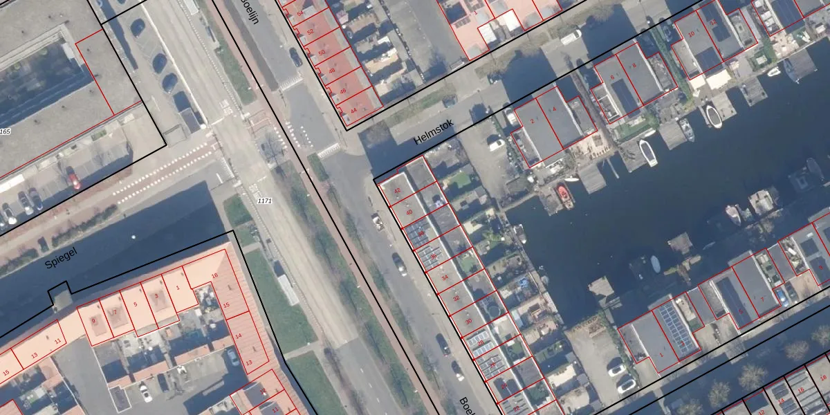 Het perceel waarop Boelijn 40 staat heeft een oppervlakte van 1,7 ha. Dit is een zeer groot perceel. De perceeloppervlakte wordt geregistreerd door het Kadaster. Gedetailleerde informatie over de maten van dit perceel kunt u vinden in het rapport Kadastrale kaart met maatvoering van Boelijn 40.