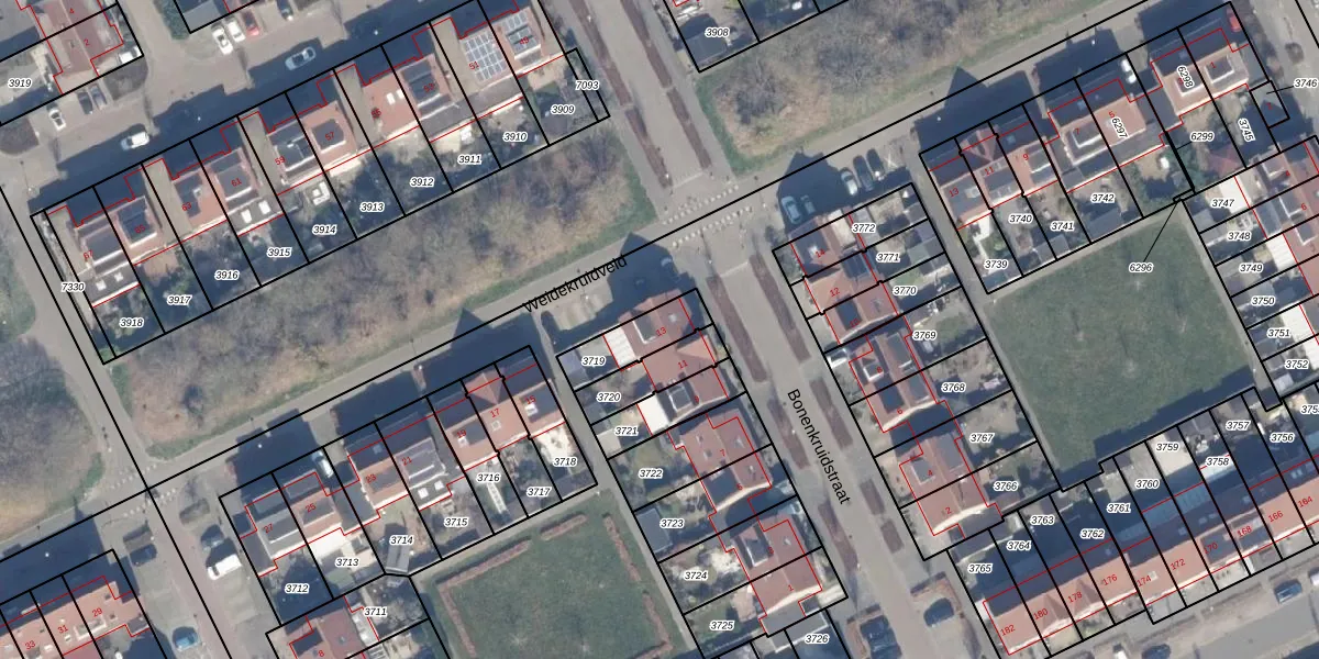Bonenkruidstraat 13 is gelegen op kadastraal perceel AMR04O3719. Deze kadastrale aanduiding is uniek en wordt gebruikt door het Kadaster om eigendomsrechten en andere zakelijke rechten vast te leggen. Het perceel maakt onderdeel uit van de kadastrale gemeente Almere.