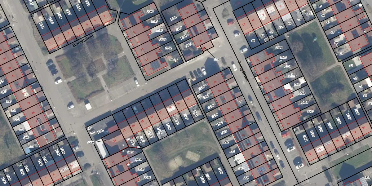 Het perceel waarop Bonietplein 14 staat heeft een oppervlakte van 135 m². Dit is een middelgroot perceel. De perceeloppervlakte wordt geregistreerd door het Kadaster. Gedetailleerde informatie over de maten van dit perceel kunt u vinden in het rapport Kadastrale kaart met maatvoering van Bonietplein 14.