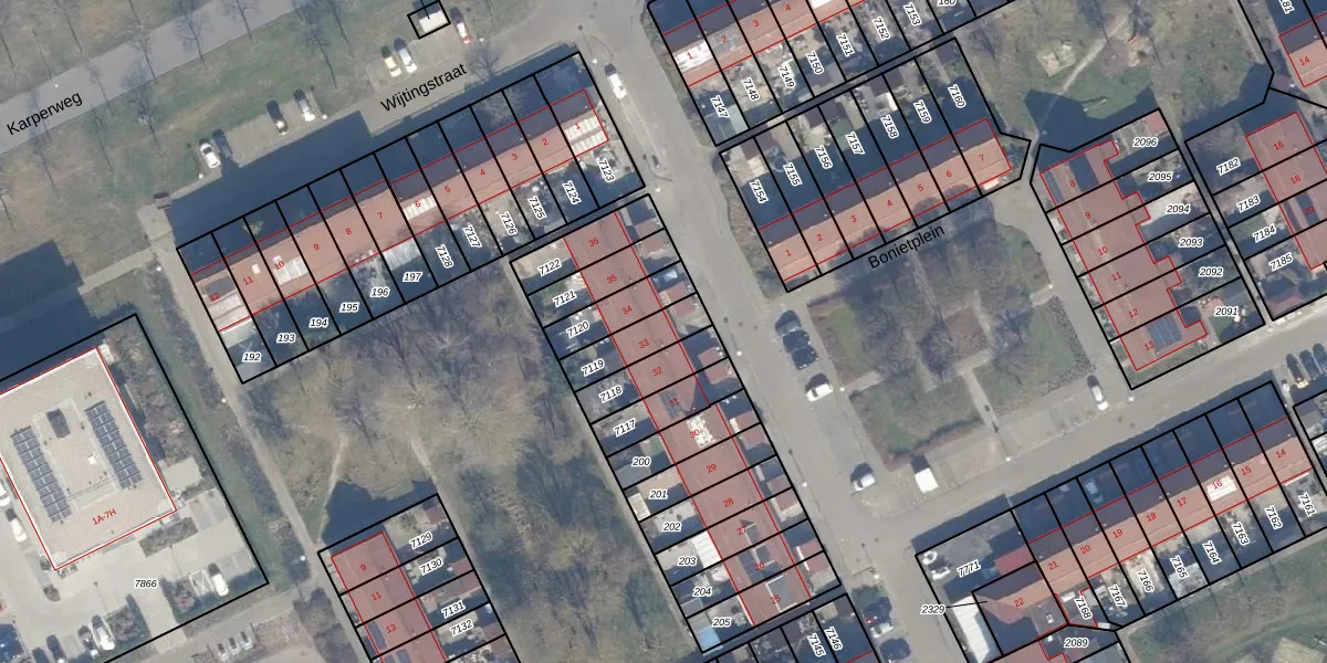 Het perceel waarop Bonietplein 33 staat heeft een oppervlakte van 126 m². Dit is een middelgroot perceel. De perceeloppervlakte wordt geregistreerd door het Kadaster. Gedetailleerde informatie over de maten van dit perceel kunt u vinden in het rapport Kadastrale kaart met maatvoering van Bonietplein 33.