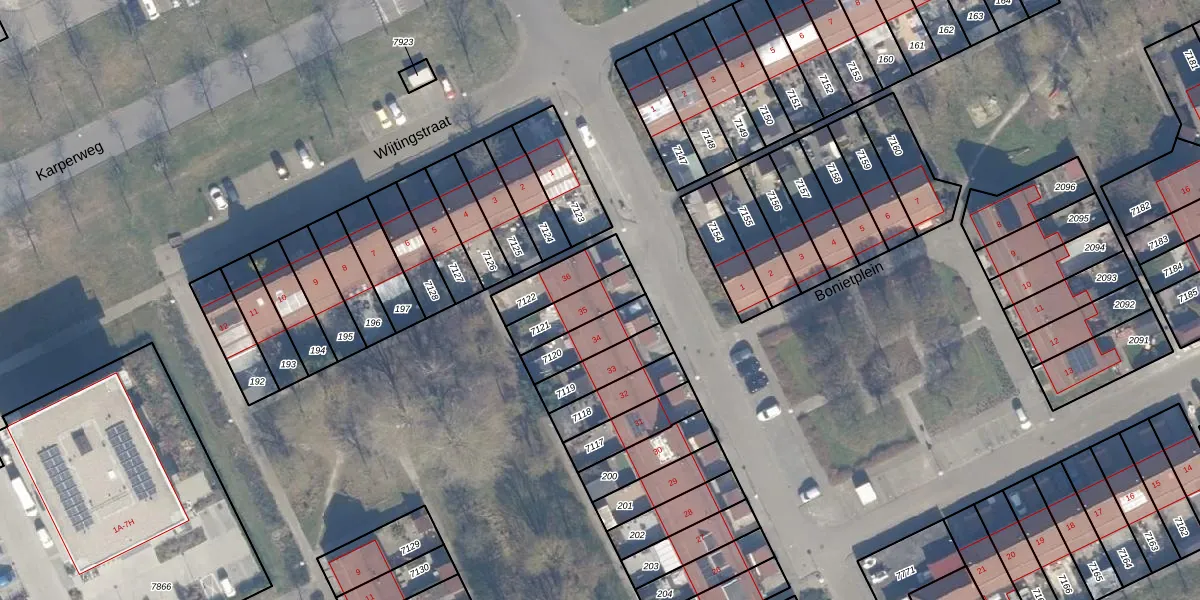 Het perceel waarop Bonietplein 35 staat heeft een oppervlakte van 126 m². Dit is een middelgroot perceel. De perceeloppervlakte wordt geregistreerd door het Kadaster. Gedetailleerde informatie over de maten van dit perceel kunt u vinden in het rapport Kadastrale kaart met maatvoering van Bonietplein 35.