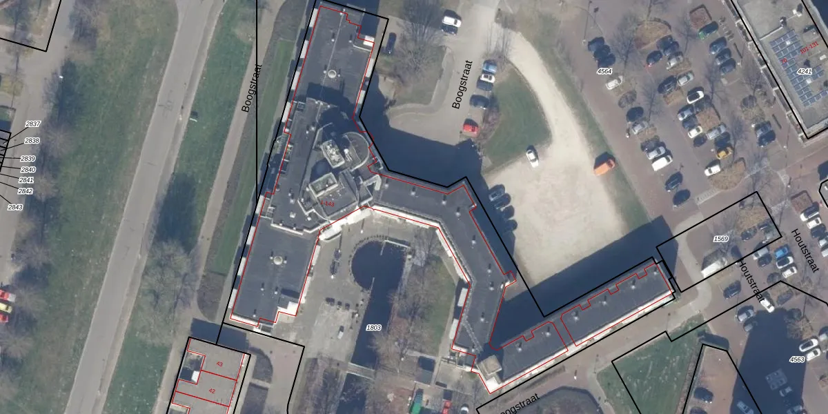 Het perceel waarop Boogstraat 100 staat heeft een oppervlakte van 5008 m². Dit is een zeer groot perceel. De perceeloppervlakte wordt geregistreerd door het Kadaster. Gedetailleerde informatie over de maten van dit perceel kunt u vinden in het rapport Kadastrale kaart met maatvoering van Boogstraat 100.