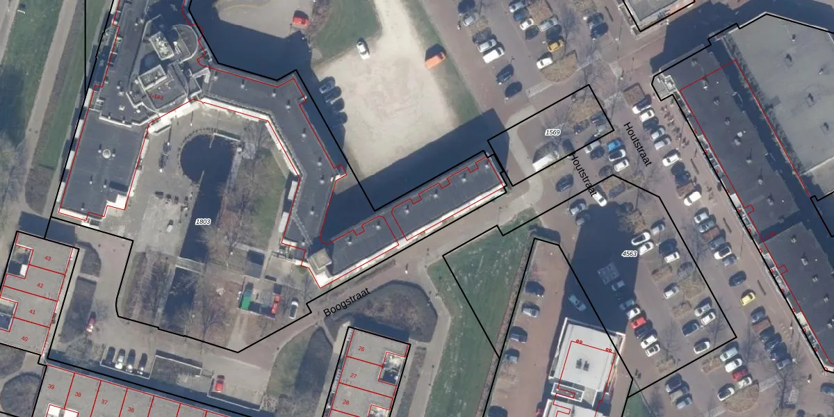 Boogstraat 12 is gelegen op kadastraal perceel AMR04H1803. Deze kadastrale aanduiding is uniek en wordt gebruikt door het Kadaster om eigendomsrechten en andere zakelijke rechten vast te leggen. Het perceel maakt onderdeel uit van de kadastrale gemeente Almere.