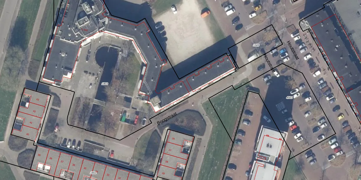 Het perceel waarop Boogstraat 17 staat heeft een oppervlakte van 5008 m². Dit is een zeer groot perceel. De perceeloppervlakte wordt geregistreerd door het Kadaster. Gedetailleerde informatie over de maten van dit perceel kunt u vinden in het rapport Kadastrale kaart met maatvoering van Boogstraat 17.