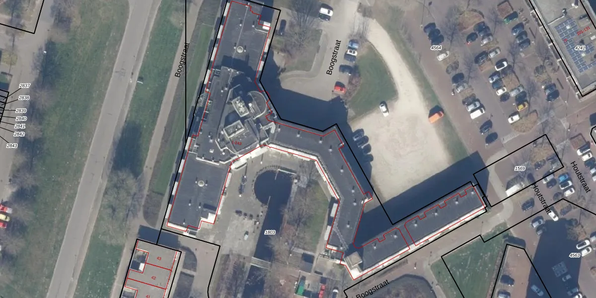 Het perceel waarop Boogstraat 68 staat heeft een oppervlakte van 5008 m². Dit is een zeer groot perceel. De perceeloppervlakte wordt geregistreerd door het Kadaster. Gedetailleerde informatie over de maten van dit perceel kunt u vinden in het rapport Kadastrale kaart met maatvoering van Boogstraat 68.