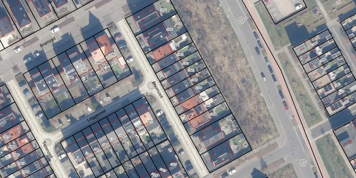 Gebruik de zoekbalk of klik op een perceel voor informatie over de adressen binnen dit perceel.