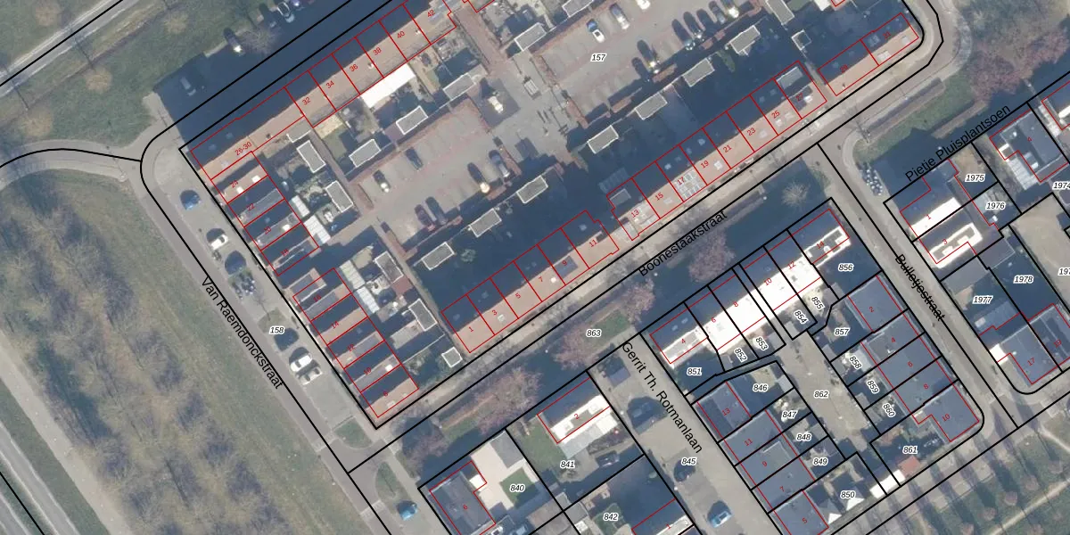 Het perceel waarop Boonestaakstraat 7 staat heeft een oppervlakte van 8089 m². Dit is een zeer groot perceel. De perceeloppervlakte wordt geregistreerd door het Kadaster. Gedetailleerde informatie over de maten van dit perceel kunt u vinden in het rapport Kadastrale kaart met maatvoering van Boonestaakstraat 7.