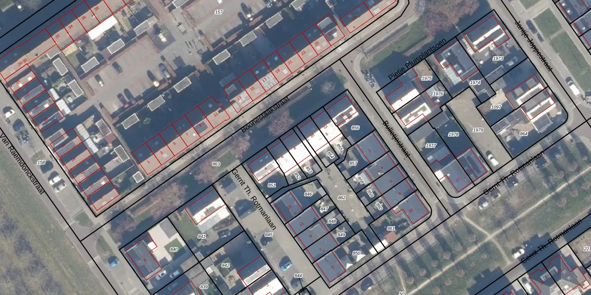 Het perceel waarop Boonestaakstraat 8 staat heeft een oppervlakte van 97 m². Dit is een klein perceel. De perceeloppervlakte wordt geregistreerd door het Kadaster. Gedetailleerde informatie over de maten van dit perceel kunt u vinden in het rapport Kadastrale kaart met maatvoering van Boonestaakstraat 8.