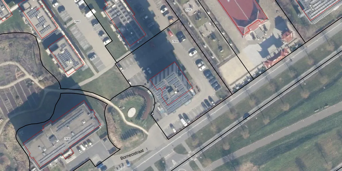 Borneostraat 1 is gelegen op kadastraal perceel AMR04B7833. Deze kadastrale aanduiding is uniek en wordt gebruikt door het Kadaster om eigendomsrechten en andere zakelijke rechten vast te leggen. Het perceel maakt onderdeel uit van de kadastrale gemeente Almere.