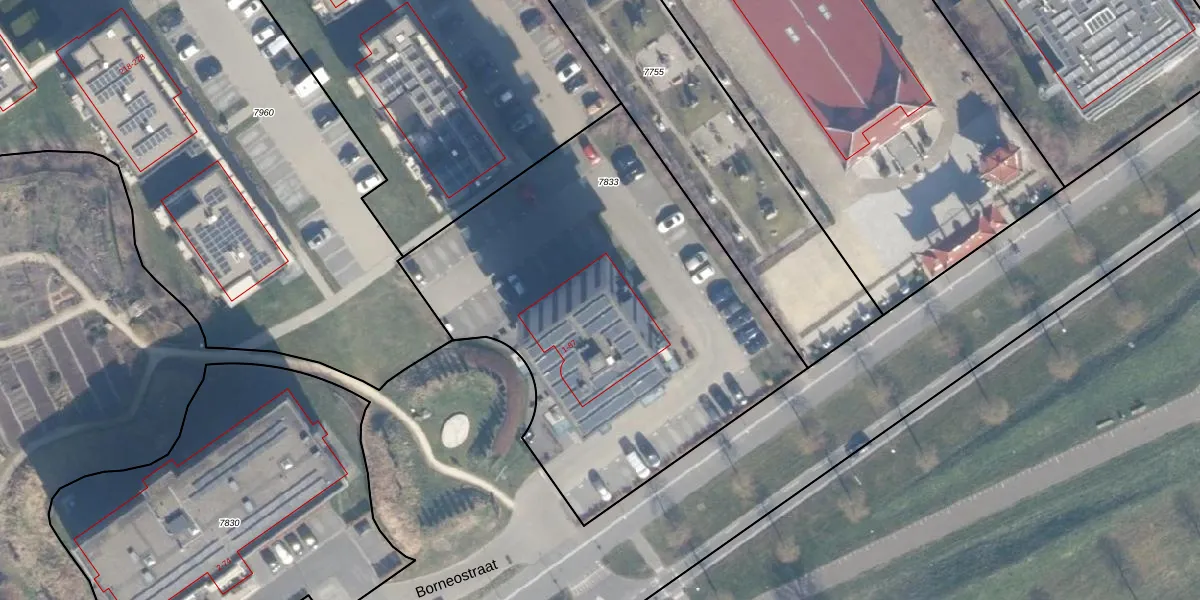 Borneostraat 37 is gelegen op kadastraal perceel AMR04B7833. Deze kadastrale aanduiding is uniek en wordt gebruikt door het Kadaster om eigendomsrechten en andere zakelijke rechten vast te leggen. Het perceel maakt onderdeel uit van de kadastrale gemeente Almere.