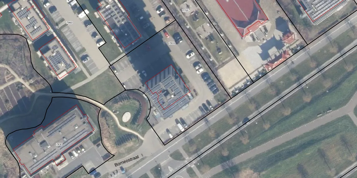 Het perceel waarop Borneostraat 55 staat heeft een oppervlakte van 2353 m². Dit is een zeer groot perceel. De perceeloppervlakte wordt geregistreerd door het Kadaster. Gedetailleerde informatie over de maten van dit perceel kunt u vinden in het rapport Kadastrale kaart met maatvoering van Borneostraat 55.