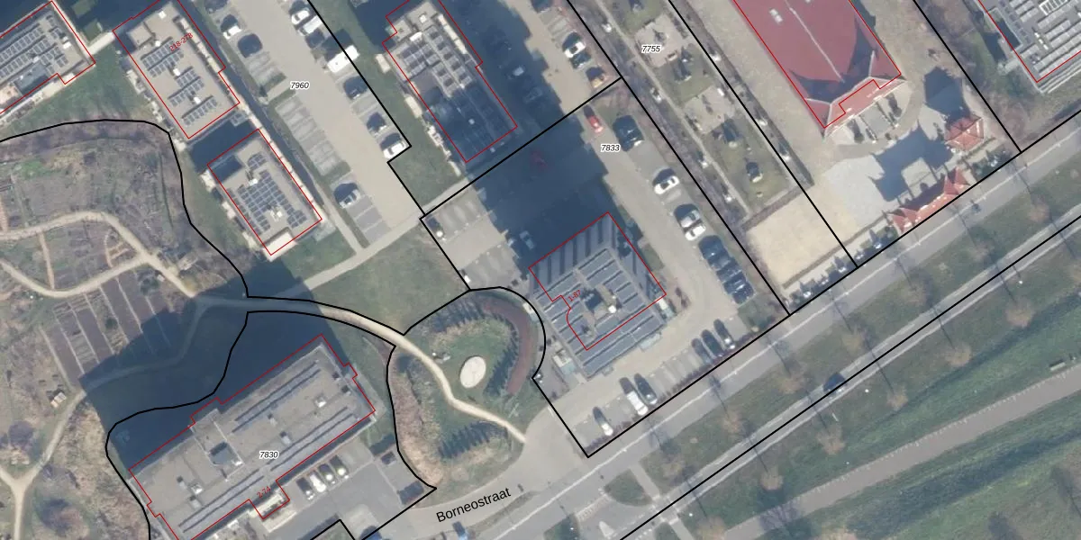 Het perceel waarop Borneostraat 75 staat heeft een oppervlakte van 2353 m². Dit is een zeer groot perceel. De perceeloppervlakte wordt geregistreerd door het Kadaster. Gedetailleerde informatie over de maten van dit perceel kunt u vinden in het rapport Kadastrale kaart met maatvoering van Borneostraat 75.