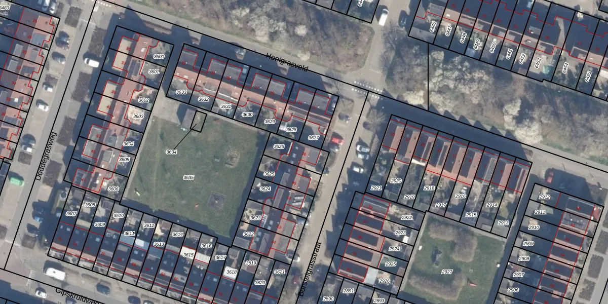 Gebruik de zoekbalk of klik op een perceel voor informatie over de adressen binnen dit perceel.