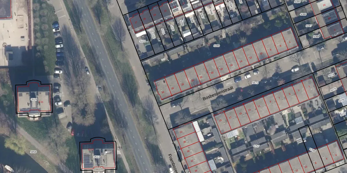 Bosbessenstraat 28 is gelegen op kadastraal perceel AMR04U5089. Deze kadastrale aanduiding is uniek en wordt gebruikt door het Kadaster om eigendomsrechten en andere zakelijke rechten vast te leggen. Het perceel maakt onderdeel uit van de kadastrale gemeente Almere.