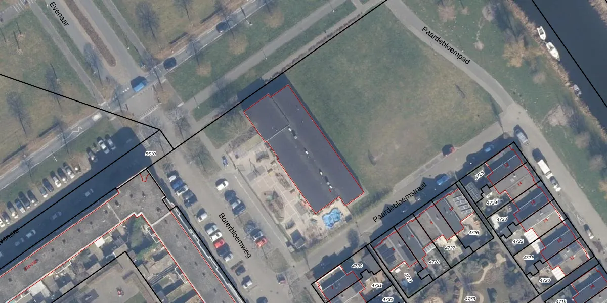 Het perceel waarop Boterbloemweg 1 staat heeft een oppervlakte van 8,9 ha. Dit is een zeer groot perceel. De perceeloppervlakte wordt geregistreerd door het Kadaster. Gedetailleerde informatie over de maten van dit perceel kunt u vinden in het rapport Kadastrale kaart met maatvoering van Boterbloemweg 1.