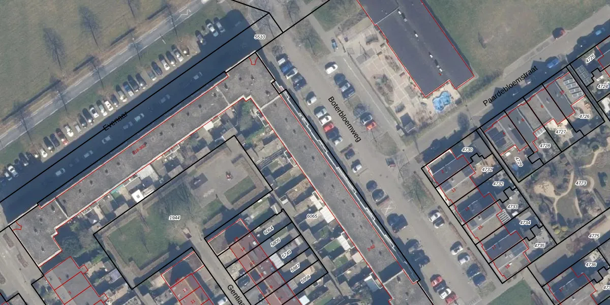 Boterbloemweg 6 is gelegen op kadastraal perceel AMR04N6065. Deze kadastrale aanduiding is uniek en wordt gebruikt door het Kadaster om eigendomsrechten en andere zakelijke rechten vast te leggen. Het perceel maakt onderdeel uit van de kadastrale gemeente Almere.