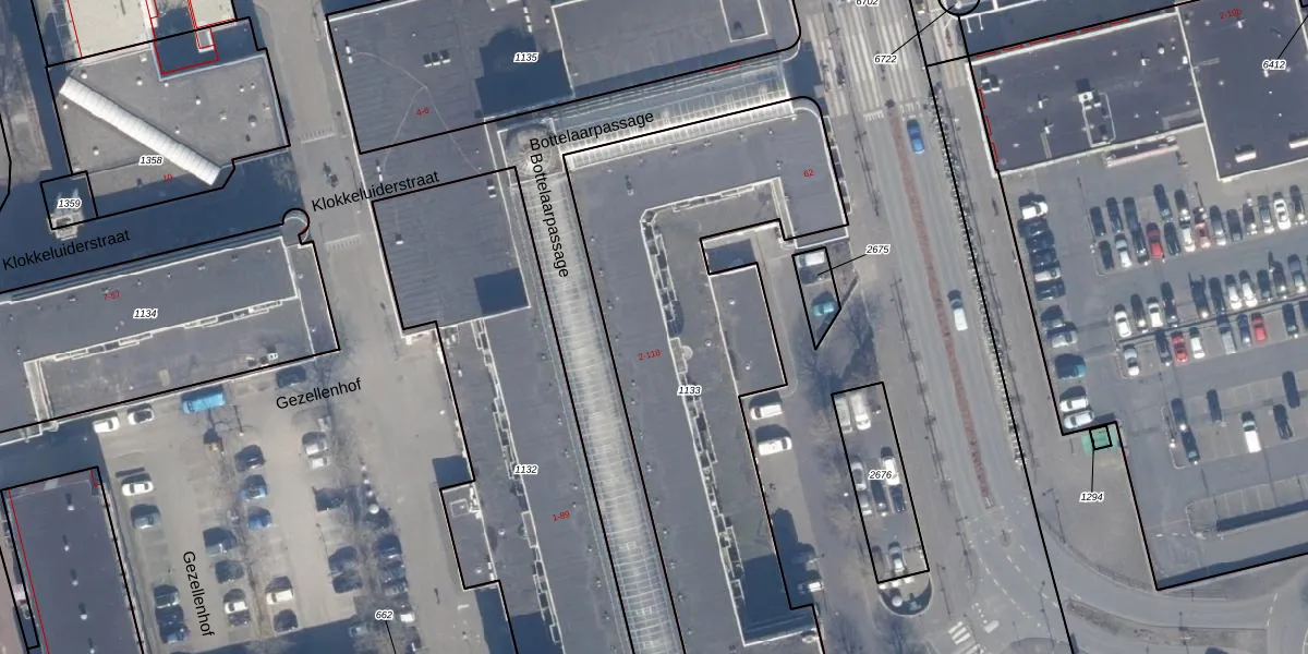 Het perceel waarop Bottelaarpassage 32 staat heeft een oppervlakte van 2087 m². Dit is een zeer groot perceel. De perceeloppervlakte wordt geregistreerd door het Kadaster. Gedetailleerde informatie over de maten van dit perceel kunt u vinden in het rapport Kadastrale kaart met maatvoering van Bottelaarpassage 32.