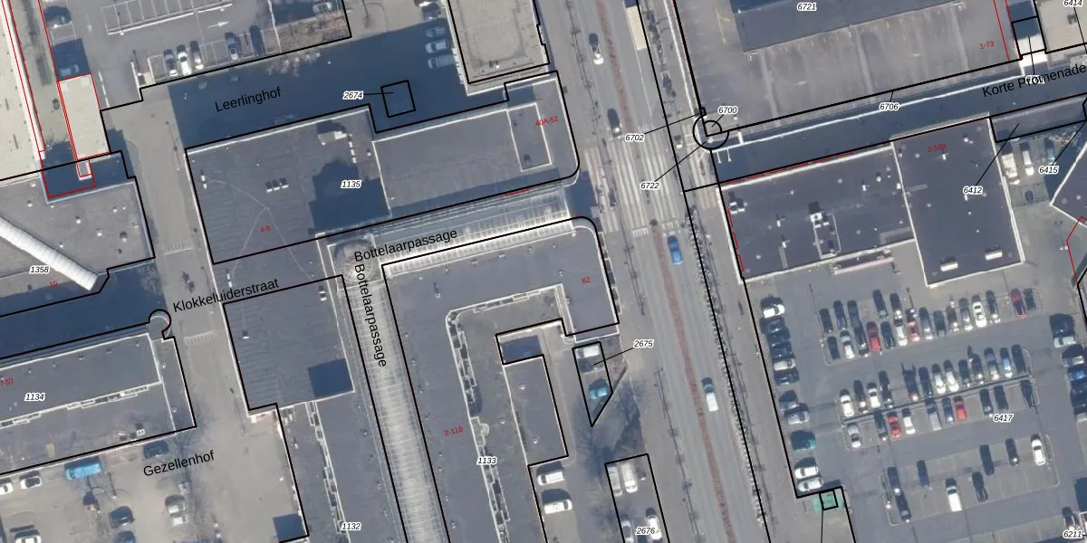 Het perceel waarop Bottelaarpassage 40 staat heeft een oppervlakte van 2087 m². Dit is een zeer groot perceel. De perceeloppervlakte wordt geregistreerd door het Kadaster. Gedetailleerde informatie over de maten van dit perceel kunt u vinden in het rapport Kadastrale kaart met maatvoering van Bottelaarpassage 40.