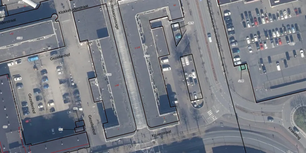 Het perceel waarop Bottelaarpassage 50 staat heeft een oppervlakte van 2087 m². Dit is een zeer groot perceel. De perceeloppervlakte wordt geregistreerd door het Kadaster. Gedetailleerde informatie over de maten van dit perceel kunt u vinden in het rapport Kadastrale kaart met maatvoering van Bottelaarpassage 50.
