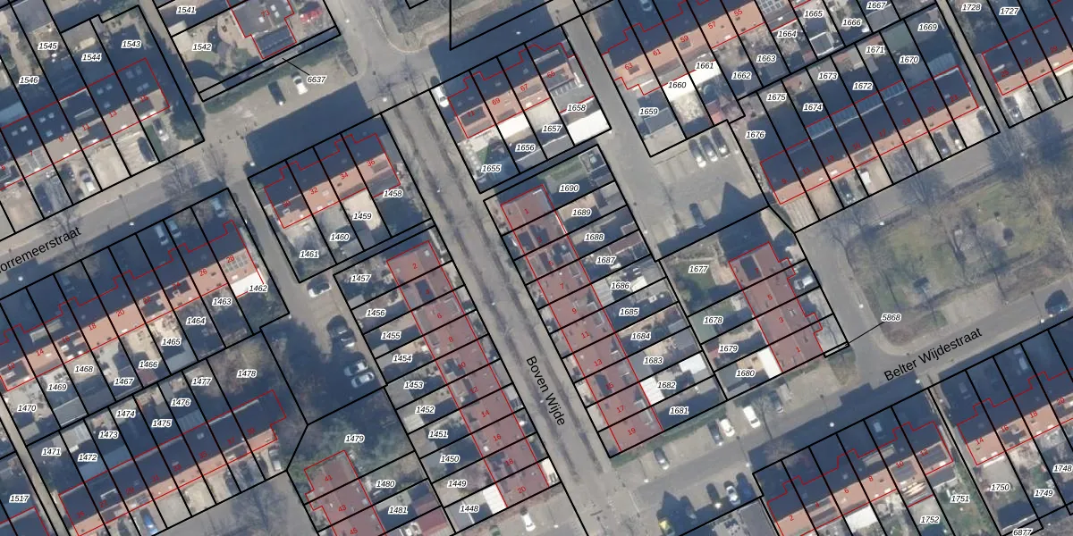 Het perceel waarop Boven Wijde 5 staat heeft een oppervlakte van 121 m². Dit is een middelgroot perceel. De perceeloppervlakte wordt geregistreerd door het Kadaster. Gedetailleerde informatie over de maten van dit perceel kunt u vinden in het rapport Kadastrale kaart met maatvoering van Boven Wijde 5.
