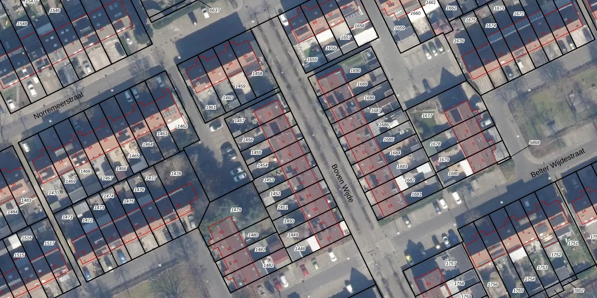 Het perceel waarop Boven Wijde 8 staat heeft een oppervlakte van 108 m². Dit is een middelgroot perceel. De perceeloppervlakte wordt geregistreerd door het Kadaster. Gedetailleerde informatie over de maten van dit perceel kunt u vinden in het rapport Kadastrale kaart met maatvoering van Boven Wijde 8.