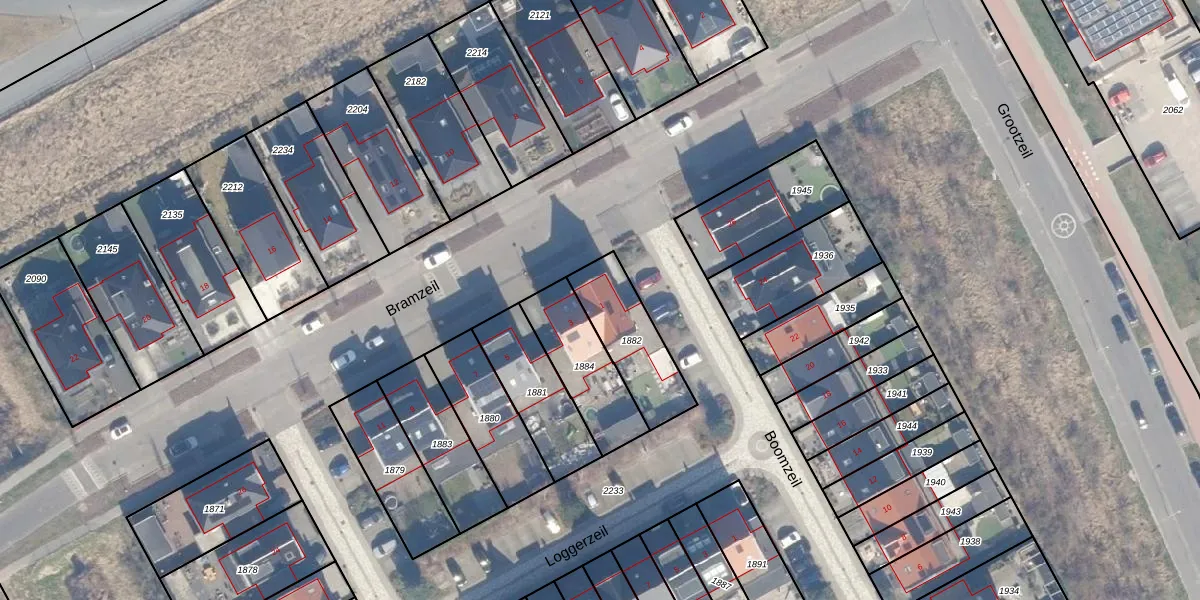 Het perceel waarop Bramzeil 1 staat heeft een oppervlakte van 262 m². Dit is een middelgroot perceel. De perceeloppervlakte wordt geregistreerd door het Kadaster. Gedetailleerde informatie over de maten van dit perceel kunt u vinden in het rapport Kadastrale kaart met maatvoering van Bramzeil 1.