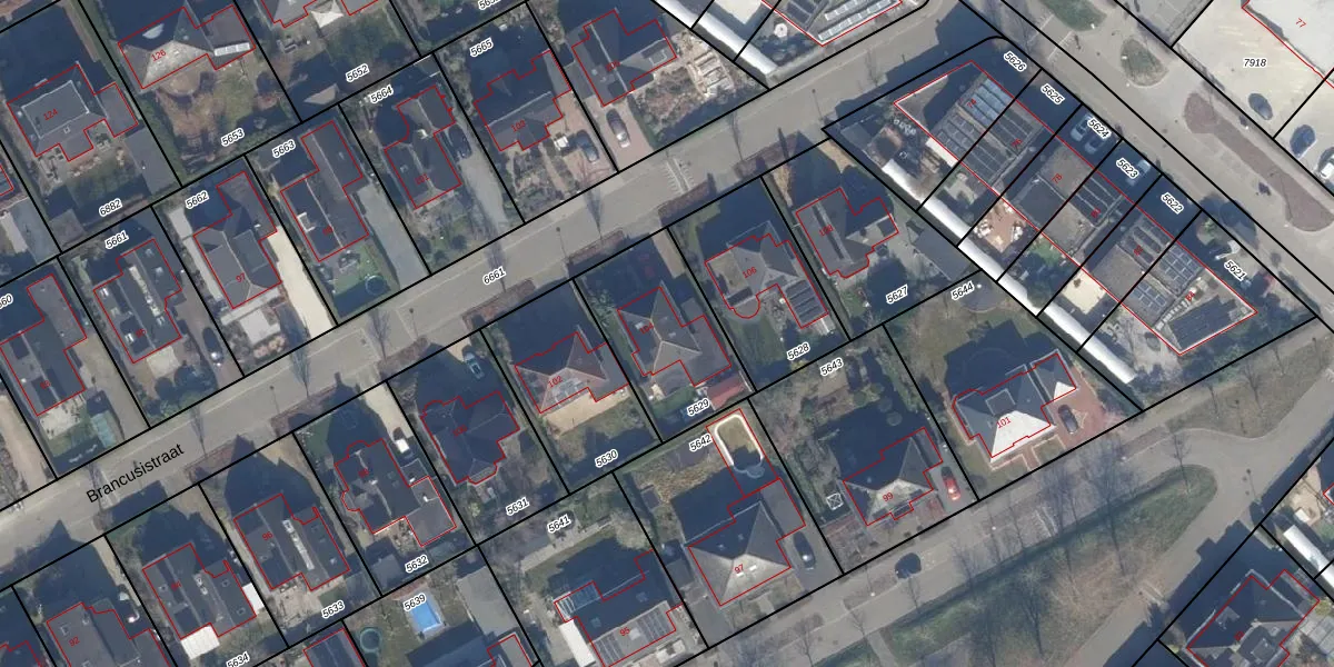 Het perceel waarop Brancusistraat 104 staat heeft een oppervlakte van 452 m². Dit is een groot perceel. De perceeloppervlakte wordt geregistreerd door het Kadaster. Gedetailleerde informatie over de maten van dit perceel kunt u vinden in het rapport Kadastrale kaart met maatvoering van Brancusistraat 104.