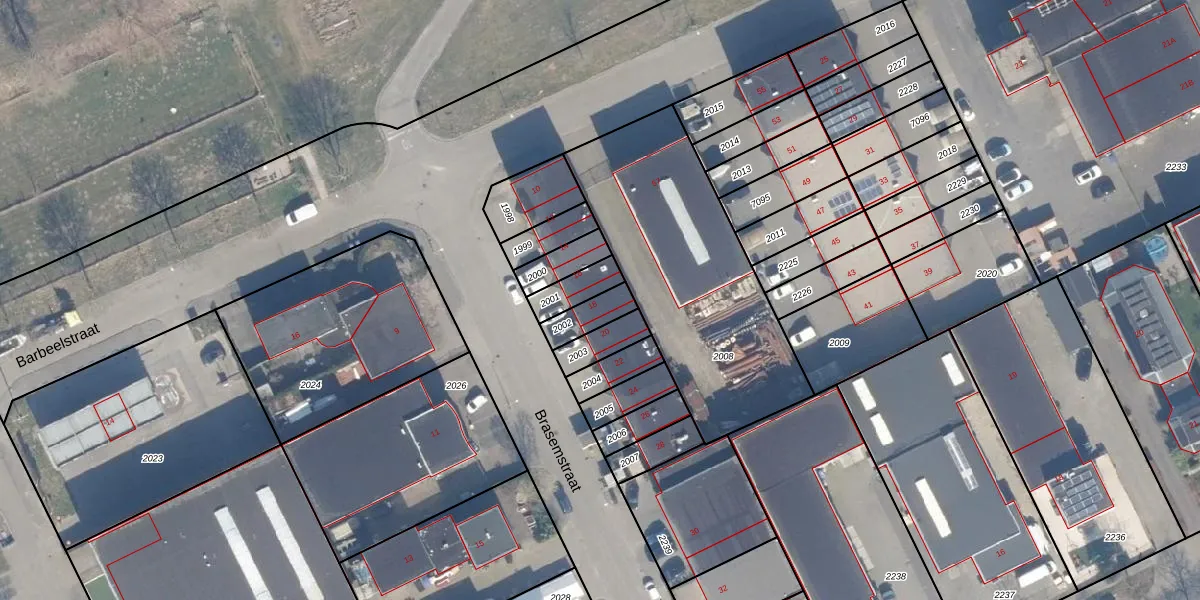 Gebruik de zoekbalk of klik op een perceel voor informatie over de adressen binnen dit perceel.