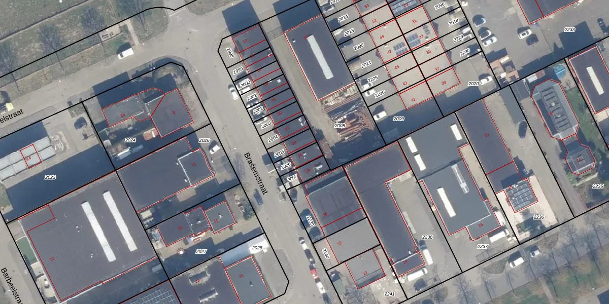 Gebruik de zoekbalk of klik op een perceel voor informatie over de adressen binnen dit perceel.