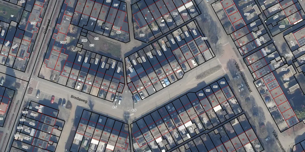 Het perceel waarop Bredaweg 65 staat heeft een oppervlakte van 162 m². Dit is een middelgroot perceel. De perceeloppervlakte wordt geregistreerd door het Kadaster. Gedetailleerde informatie over de maten van dit perceel kunt u vinden in het rapport Kadastrale kaart met maatvoering van Bredaweg 65.