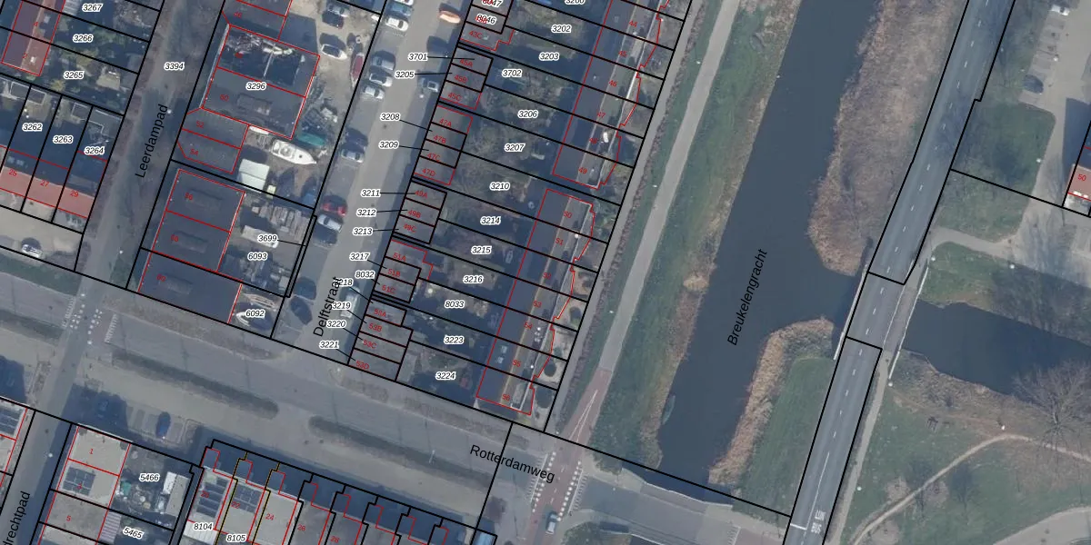 Het perceel waarop Breukelengracht 52 staat heeft een oppervlakte van 182 m². Dit is een middelgroot perceel. De perceeloppervlakte wordt geregistreerd door het Kadaster. Gedetailleerde informatie over de maten van dit perceel kunt u vinden in het rapport Kadastrale kaart met maatvoering van Breukelengracht 52.