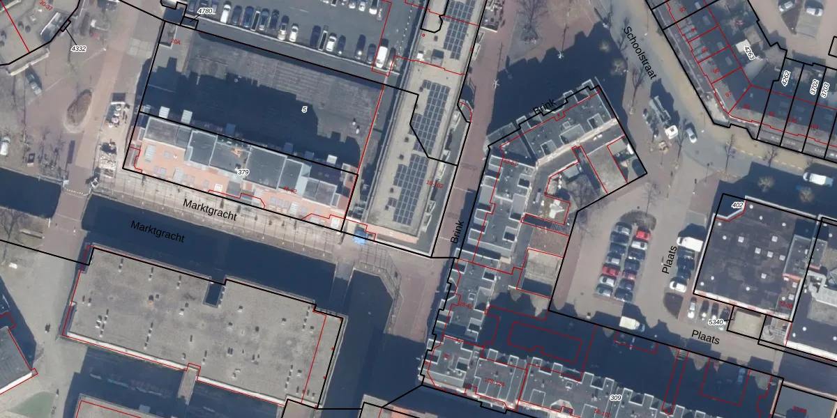 Het perceel waarop Brink 34 staat heeft een oppervlakte van 1875 m². Dit is een zeer groot perceel. De perceeloppervlakte wordt geregistreerd door het Kadaster. Gedetailleerde informatie over de maten van dit perceel kunt u vinden in het rapport Kadastrale kaart met maatvoering van Brink 34.