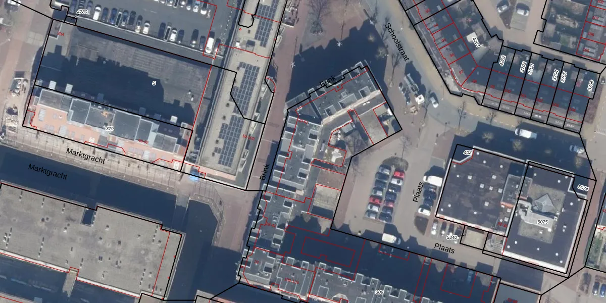 Het perceel waarop Brink 57 staat heeft een oppervlakte van 3440 m². Dit is een zeer groot perceel. De perceeloppervlakte wordt geregistreerd door het Kadaster. Gedetailleerde informatie over de maten van dit perceel kunt u vinden in het rapport Kadastrale kaart met maatvoering van Brink 57.