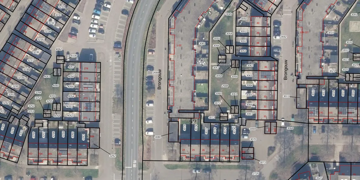 Brongouw 10 is gelegen op kadastraal perceel AMR04G3081. Deze kadastrale aanduiding is uniek en wordt gebruikt door het Kadaster om eigendomsrechten en andere zakelijke rechten vast te leggen. Het perceel maakt onderdeel uit van de kadastrale gemeente Almere.