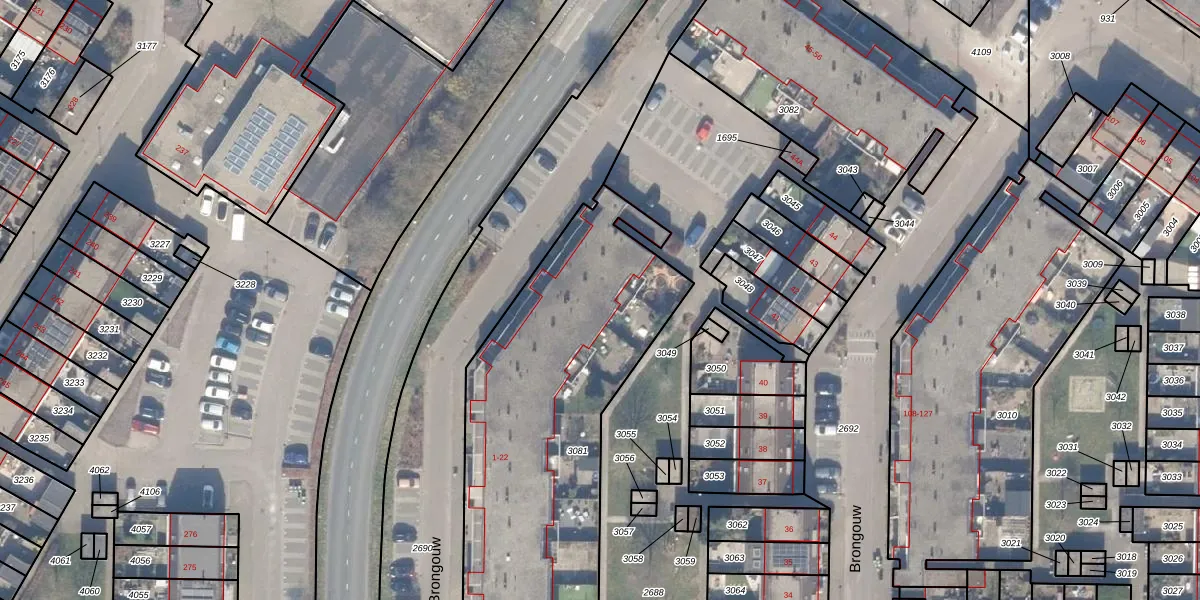 Het perceel waarop Brongouw 13 staat heeft een oppervlakte van 1855 m². Dit is een zeer groot perceel. De perceeloppervlakte wordt geregistreerd door het Kadaster. Gedetailleerde informatie over de maten van dit perceel kunt u vinden in het rapport Kadastrale kaart met maatvoering van Brongouw 13.
