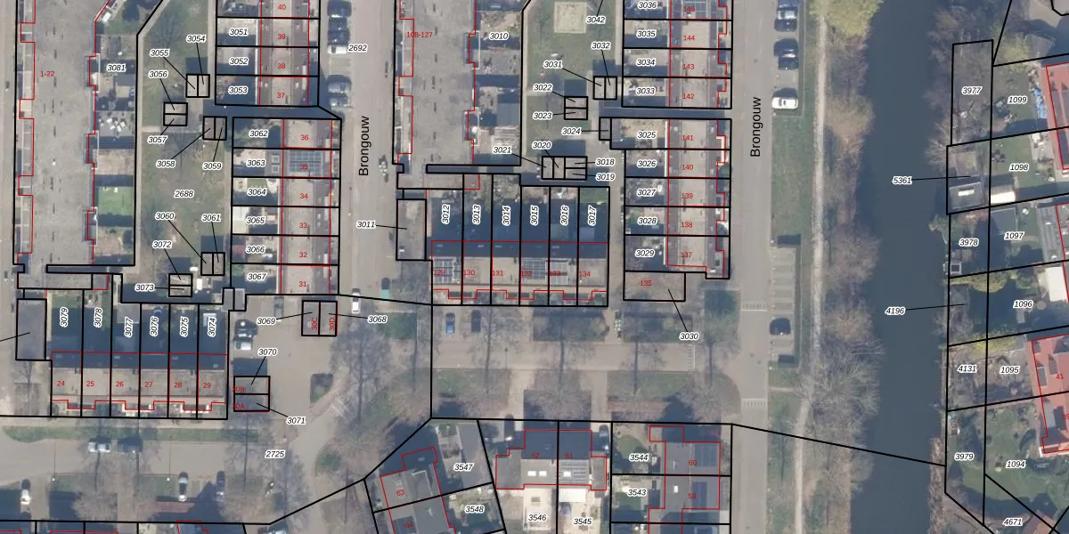 Het perceel waarop Brongouw 132 staat heeft een oppervlakte van 122 m². Dit is een middelgroot perceel. De perceeloppervlakte wordt geregistreerd door het Kadaster. Gedetailleerde informatie over de maten van dit perceel kunt u vinden in het rapport Kadastrale kaart met maatvoering van Brongouw 132.