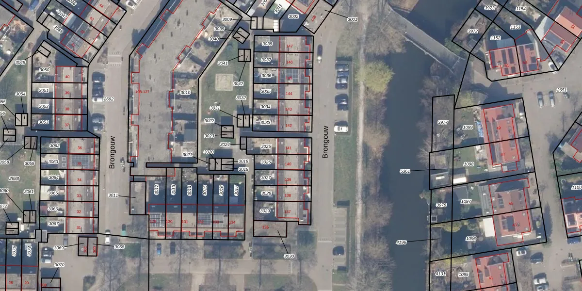 Het perceel waarop Brongouw 141 staat heeft een oppervlakte van 129 m². Dit is een middelgroot perceel. De perceeloppervlakte wordt geregistreerd door het Kadaster. Gedetailleerde informatie over de maten van dit perceel kunt u vinden in het rapport Kadastrale kaart met maatvoering van Brongouw 141.