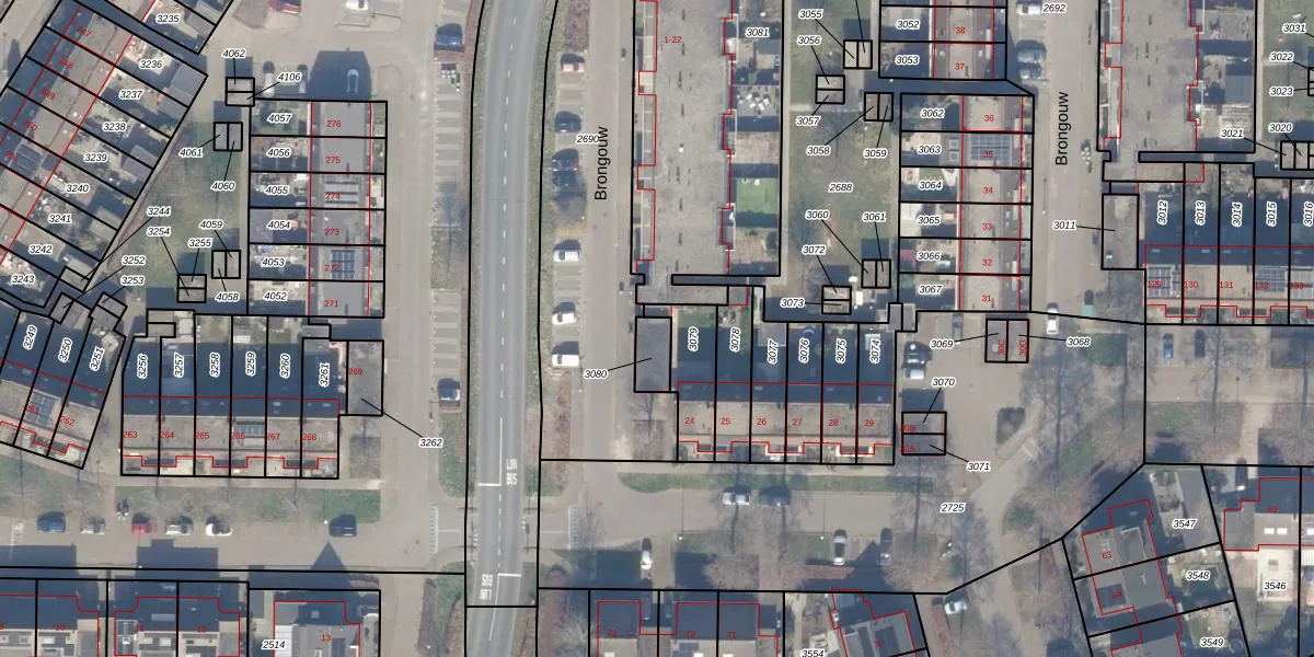 Het perceel waarop Brongouw 22 staat heeft een oppervlakte van 62 m². Dit is een klein perceel. De perceeloppervlakte wordt geregistreerd door het Kadaster. Gedetailleerde informatie over de maten van dit perceel kunt u vinden in het rapport Kadastrale kaart met maatvoering van Brongouw 22.