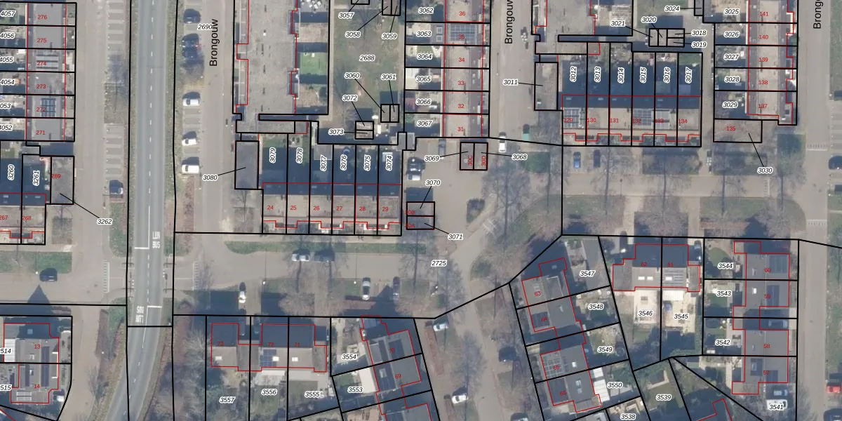 Het perceel waarop Brongouw 30-B staat heeft een oppervlakte van 21 m². Dit is een klein perceel. De perceeloppervlakte wordt geregistreerd door het Kadaster. Gedetailleerde informatie over de maten van dit perceel kunt u vinden in het rapport Kadastrale kaart met maatvoering van Brongouw 30-B.