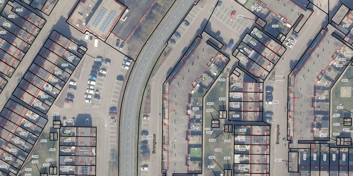 Het perceel waarop Brongouw 5 staat heeft een oppervlakte van 1855 m². Dit is een zeer groot perceel. De perceeloppervlakte wordt geregistreerd door het Kadaster. Gedetailleerde informatie over de maten van dit perceel kunt u vinden in het rapport Kadastrale kaart met maatvoering van Brongouw 5.