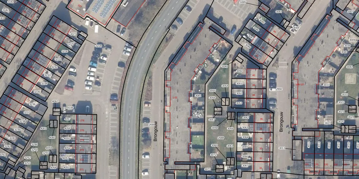 Het perceel waarop Brongouw 6 staat heeft een oppervlakte van 1855 m². Dit is een zeer groot perceel. De perceeloppervlakte wordt geregistreerd door het Kadaster. Gedetailleerde informatie over de maten van dit perceel kunt u vinden in het rapport Kadastrale kaart met maatvoering van Brongouw 6.