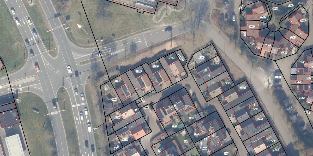 Het perceel waarop Brugmark 20 staat heeft een oppervlakte van 221 m². Dit is een middelgroot perceel. De perceeloppervlakte wordt geregistreerd door het Kadaster. Gedetailleerde informatie over de maten van dit perceel kunt u vinden in het rapport Kadastrale kaart met maatvoering van Brugmark 20.