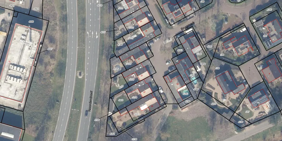 Het perceel waarop Brugmark 42 staat heeft een oppervlakte van 247 m². Dit is een middelgroot perceel. De perceeloppervlakte wordt geregistreerd door het Kadaster. Gedetailleerde informatie over de maten van dit perceel kunt u vinden in het rapport Kadastrale kaart met maatvoering van Brugmark 42.
