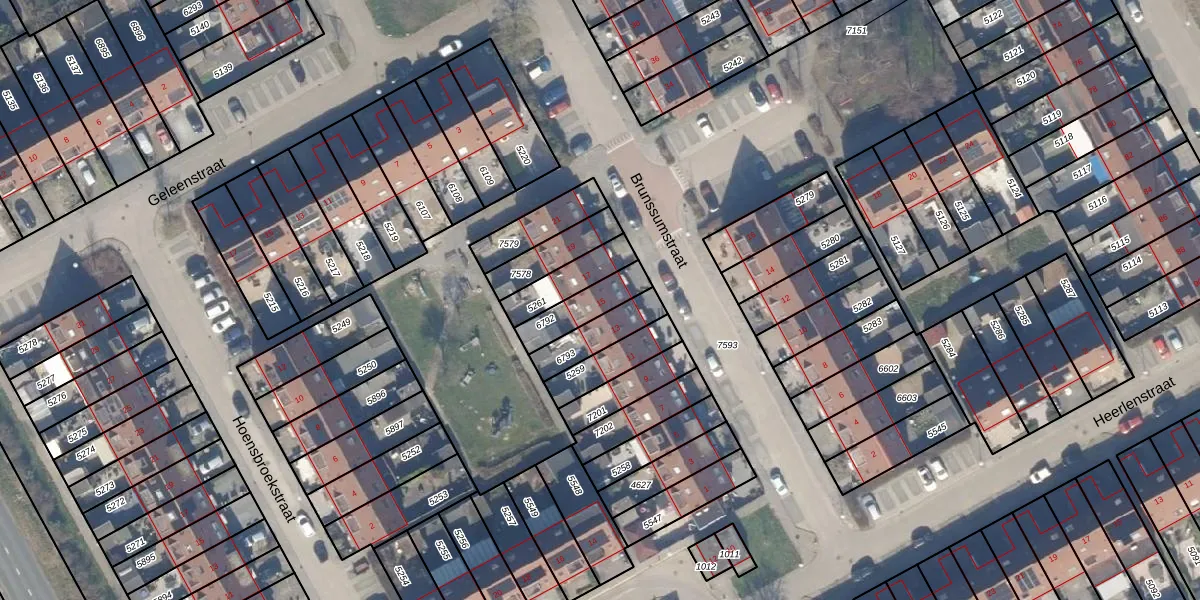 Het perceel waarop Brunssumstraat 15 staat heeft een oppervlakte van 121 m². Dit is een middelgroot perceel. De perceeloppervlakte wordt geregistreerd door het Kadaster. Gedetailleerde informatie over de maten van dit perceel kunt u vinden in het rapport Kadastrale kaart met maatvoering van Brunssumstraat 15.