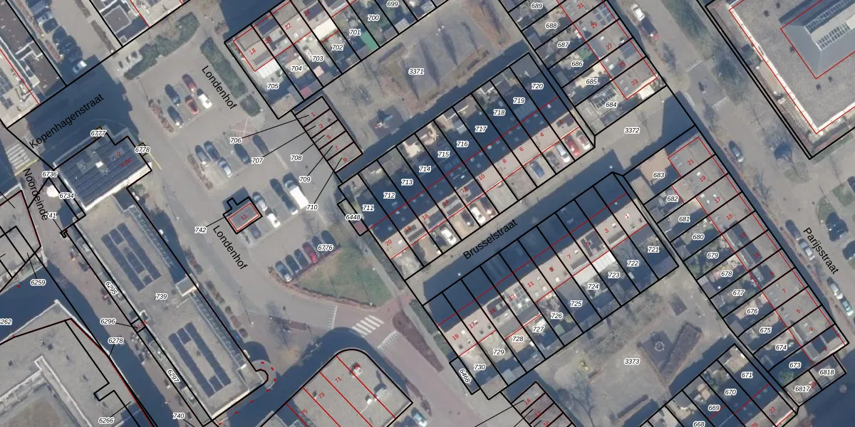 Brusselstraat 16 is gelegen op kadastraal perceel AMR04N713. Deze kadastrale aanduiding is uniek en wordt gebruikt door het Kadaster om eigendomsrechten en andere zakelijke rechten vast te leggen. Het perceel maakt onderdeel uit van de kadastrale gemeente Almere.