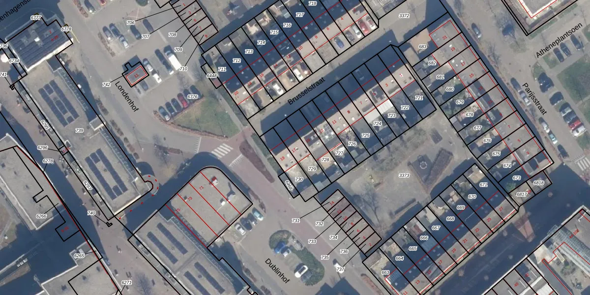 Gebruik de zoekbalk of klik op een perceel voor informatie over de adressen binnen dit perceel.
