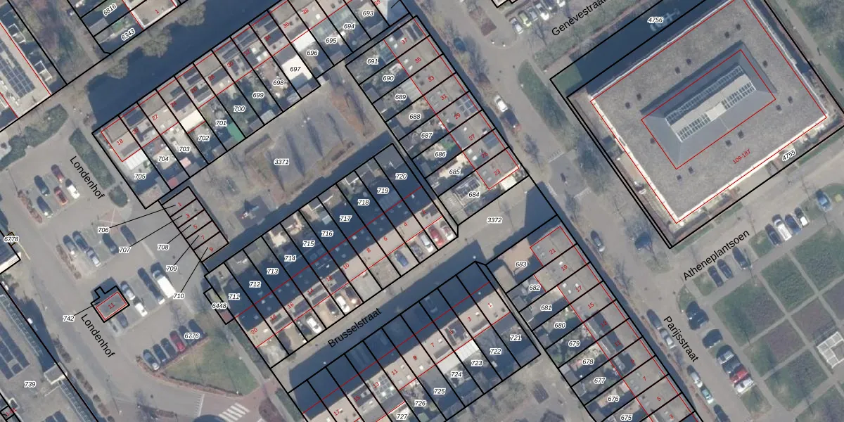 Gebruik de zoekbalk of klik op een perceel voor informatie over de adressen binnen dit perceel.