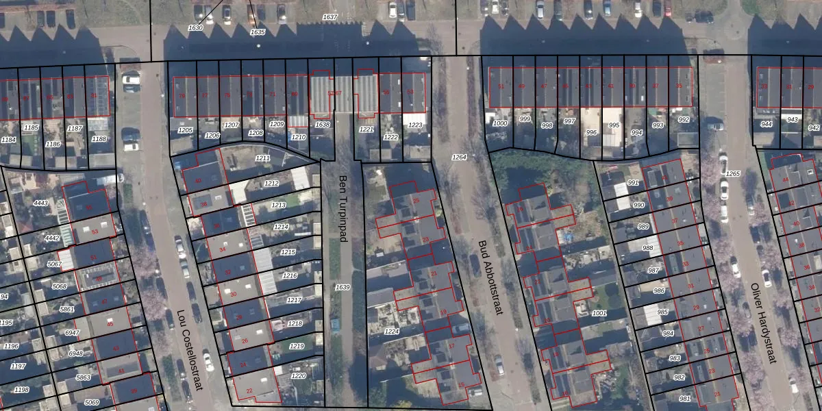 Het perceel waarop Bud Abbottstraat 25 staat heeft een oppervlakte van 1405 m². Dit is een zeer groot perceel. De perceeloppervlakte wordt geregistreerd door het Kadaster. Gedetailleerde informatie over de maten van dit perceel kunt u vinden in het rapport Kadastrale kaart met maatvoering van Bud Abbottstraat 25.