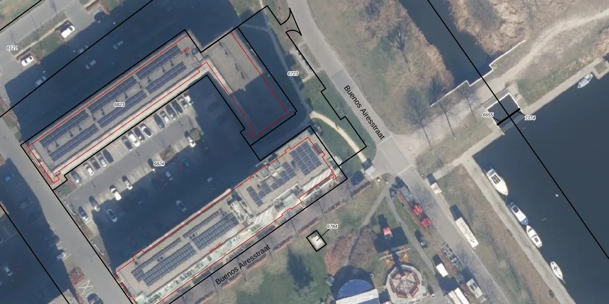 Het perceel waarop Buenos Airesstraat 225 staat heeft een oppervlakte van 3806 m². Dit is een zeer groot perceel. De perceeloppervlakte wordt geregistreerd door het Kadaster. Gedetailleerde informatie over de maten van dit perceel kunt u vinden in het rapport Kadastrale kaart met maatvoering van Buenos Airesstraat 225.